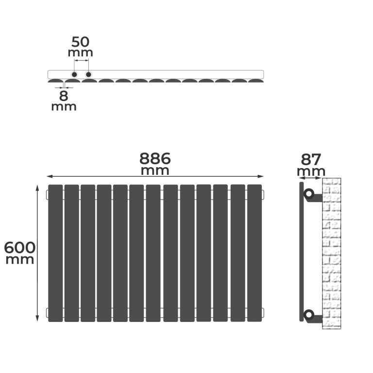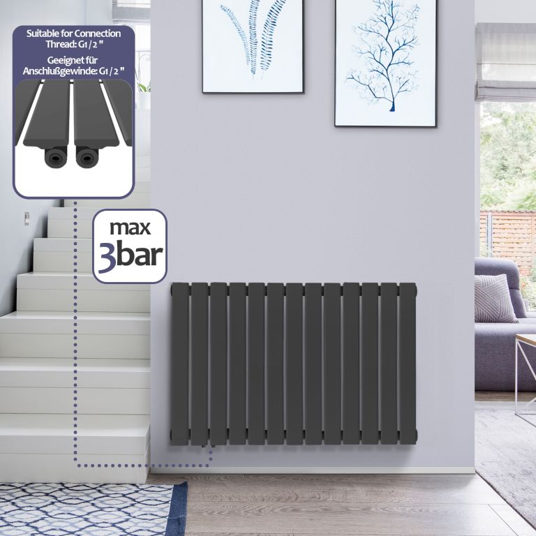 Radiátor: 1 db vízszintes panelradiátor (600 x 886 x 52 mm, antracit)