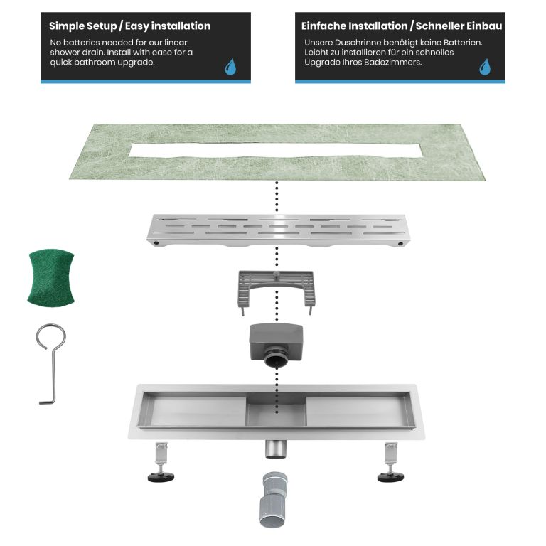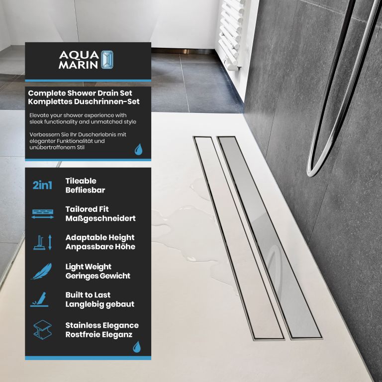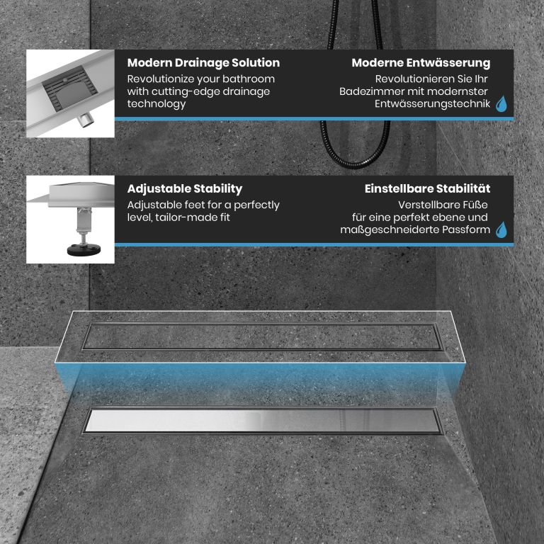 Alakítsa át fürdőszobáját stílusos oázissá lineáris zuhanylefolyóinkkal. Egyszerű telepítés, tartósság és modern design az Ön egyedi helyisége számára