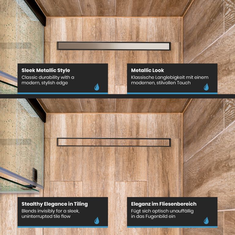 Alakítsa át fürdőszobáját stílusos oázissá lineáris zuhanylefolyóinkkal. Egyszerű telepítés, tartósság és modern design az Ön egyedi helyisége számára