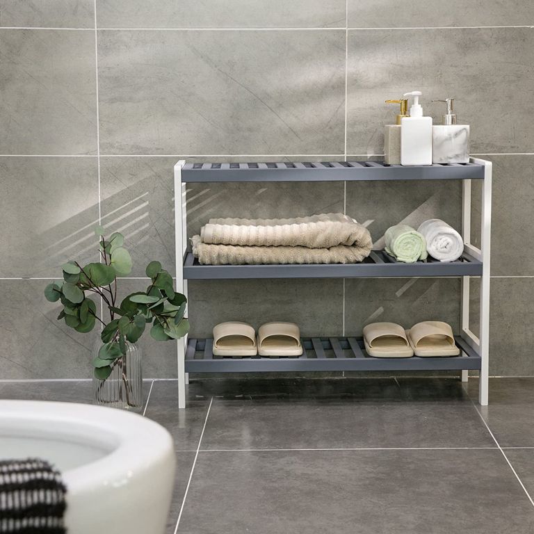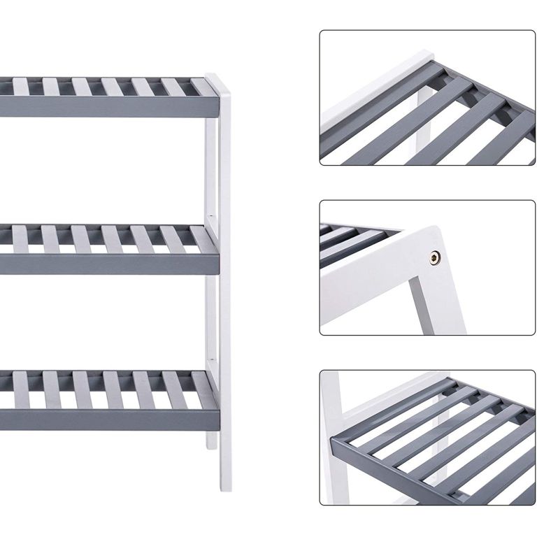 Bambusz cipőtartó 3 polccal 70 x 26 x 55 cm fehér-szürke