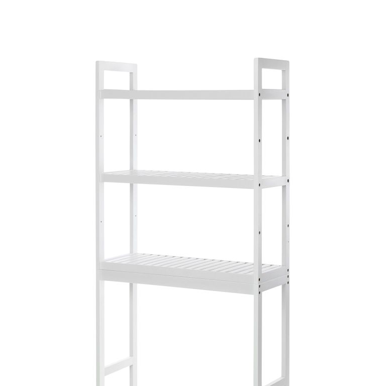 A részletesebb leírás megtekintéseA praktikus, háromszintes bambuszpolc helyet takarít meg, és rengeteg tárolóhelyet kínál a fürdőszobában.