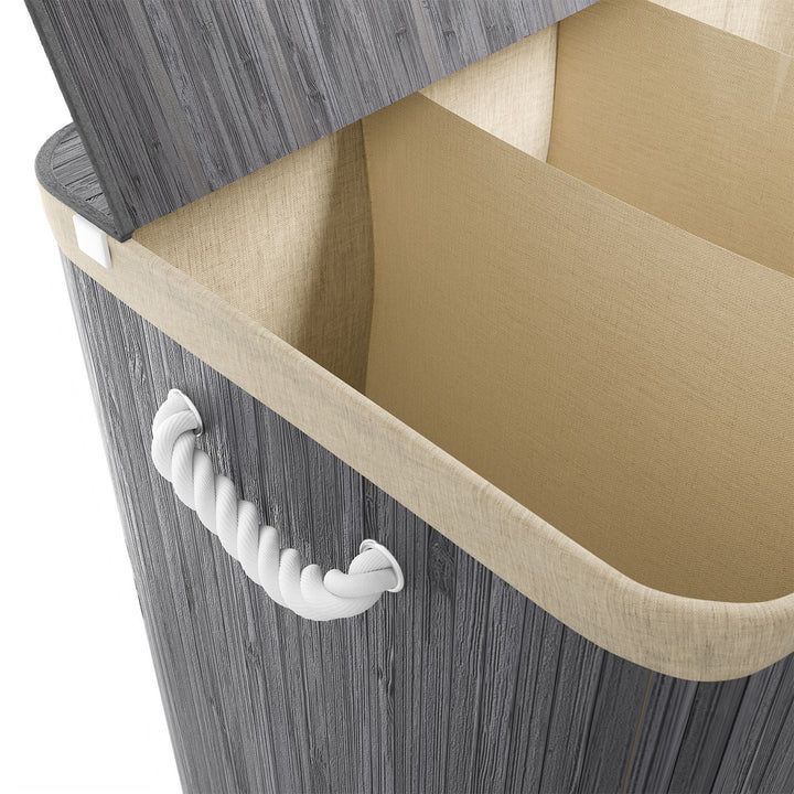 Tartsa tisztán és rendezetten otthonát ezzel a tágas, 150 literes bambusz szennyestartó kosárral. Három különálló rekesszel, mosható belső zsákkal és masszív bambuszléc-szerkezettel ideális a ruhák mindennapi szétválogatásához és higiénikus tárolásához. A stílusos, természetes, modern szürke dizájn a fürdőszobába, a hálószobába és a gyerekszobába is illik.