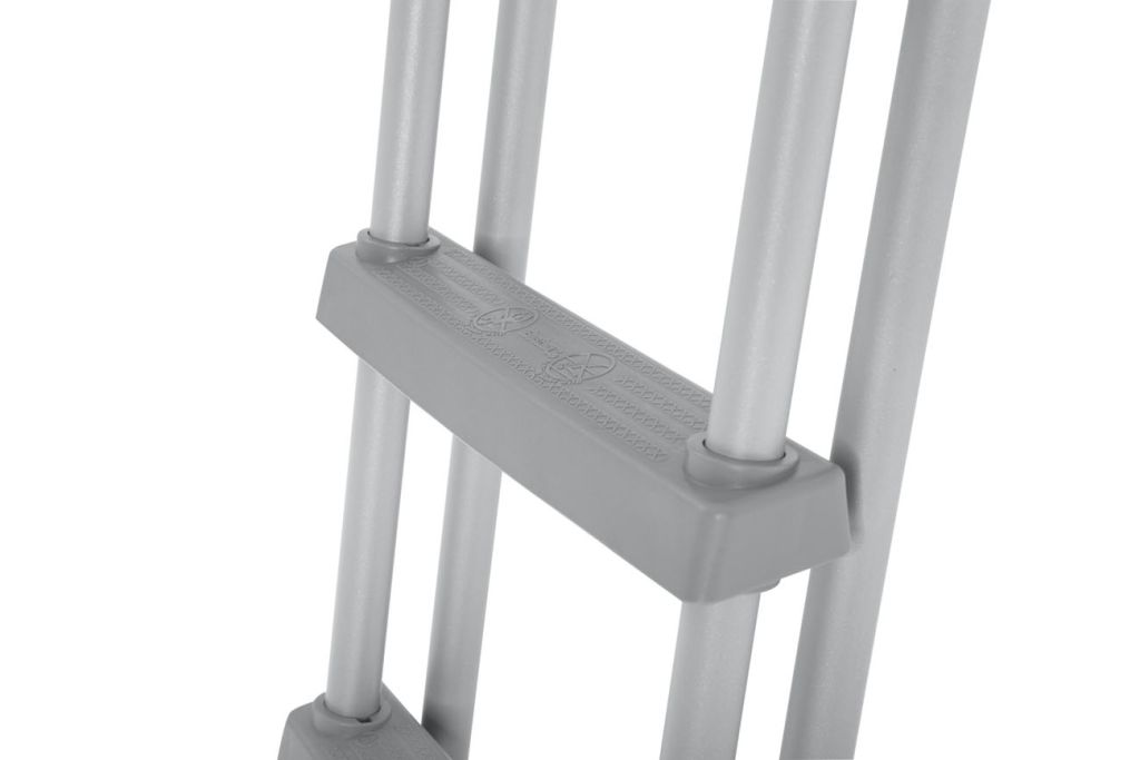 A lépcsők megfelelnek az új EU biztonsági szabványnak! A lépcsőket 107 cm-es és az alatti medencékhez tervezték, és különböző típusú medencékhez használhatók. Az egyetlen korlátozó feltétel az oldalfal maximális 107 cm-es magasságának betartása. A lépcsők minden biztonsági tanúsítvánnyal rendelkeznek.
