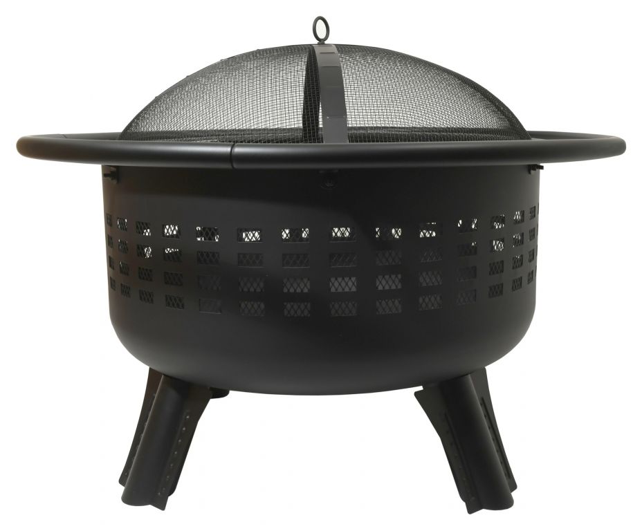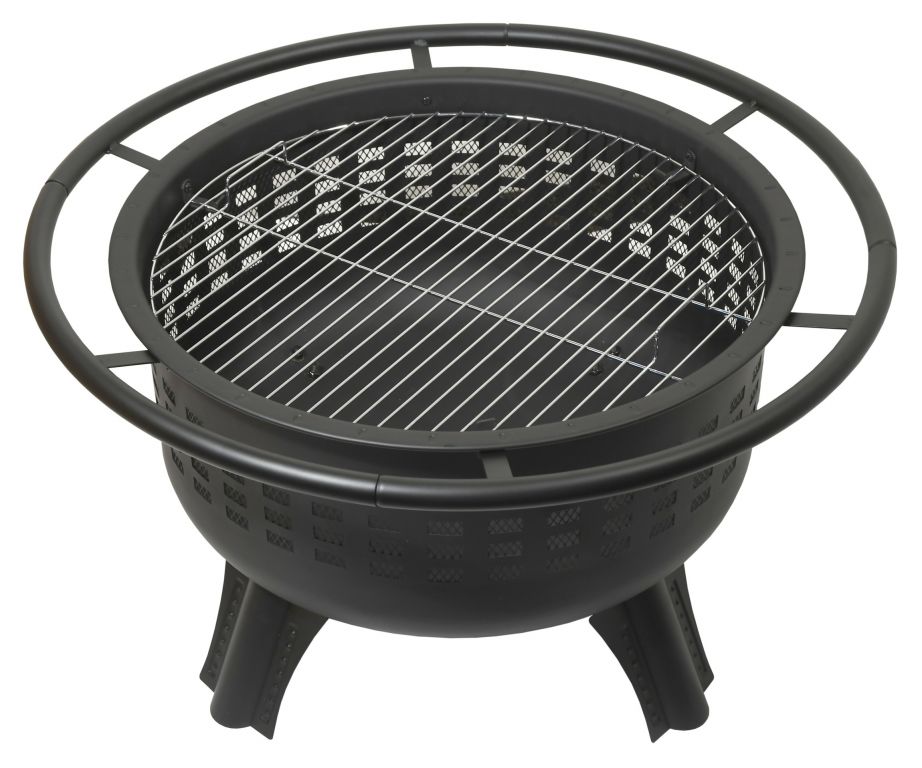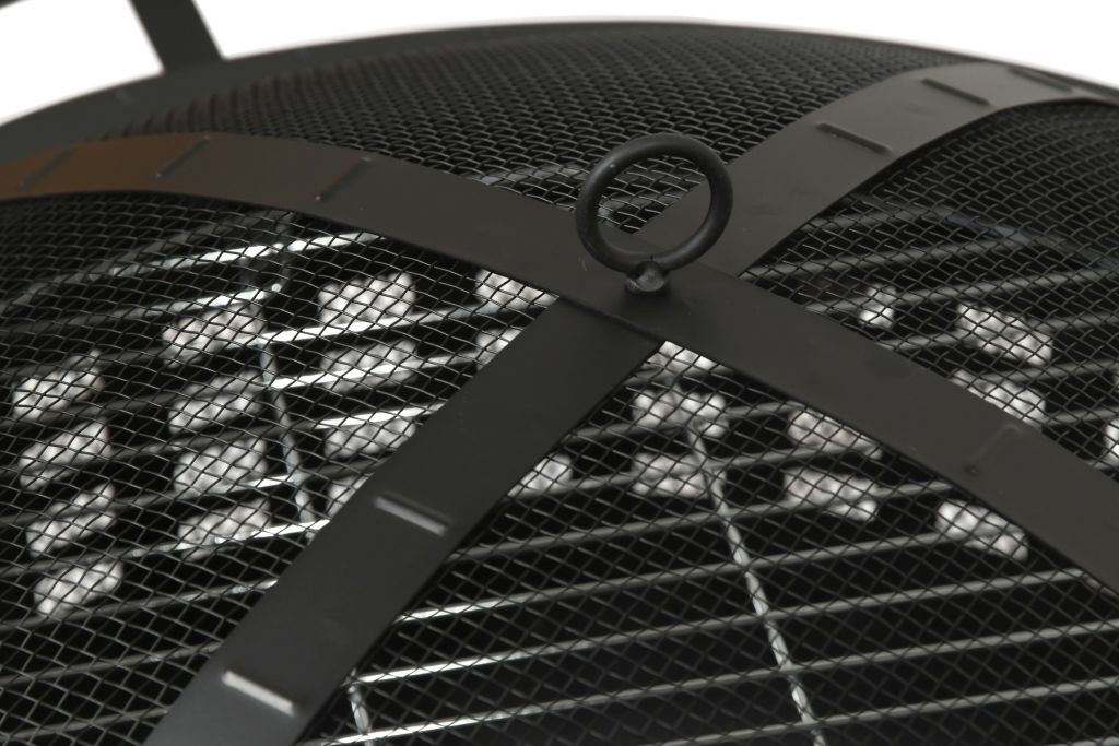 MERAPI hordozható kandalló teraszokba és kertekbe. A kandalló szerkezete kiváló minőségű acélból készült, magas hőmérsékletű fekete bevonattal. A grillezéshez a kandalló 61 cm átmérőjű acél ráccsal van felszerelve. A speciálisan kialakított hálós burkolat védelmet nyújt a szikra ellen, ami jelentősen növeli a biztonságot és a kényelmet. A kandalló 4 erős lábbal is fel van szerelve, így bármilyen sík felületen biztonságosan elhelyezhető.
