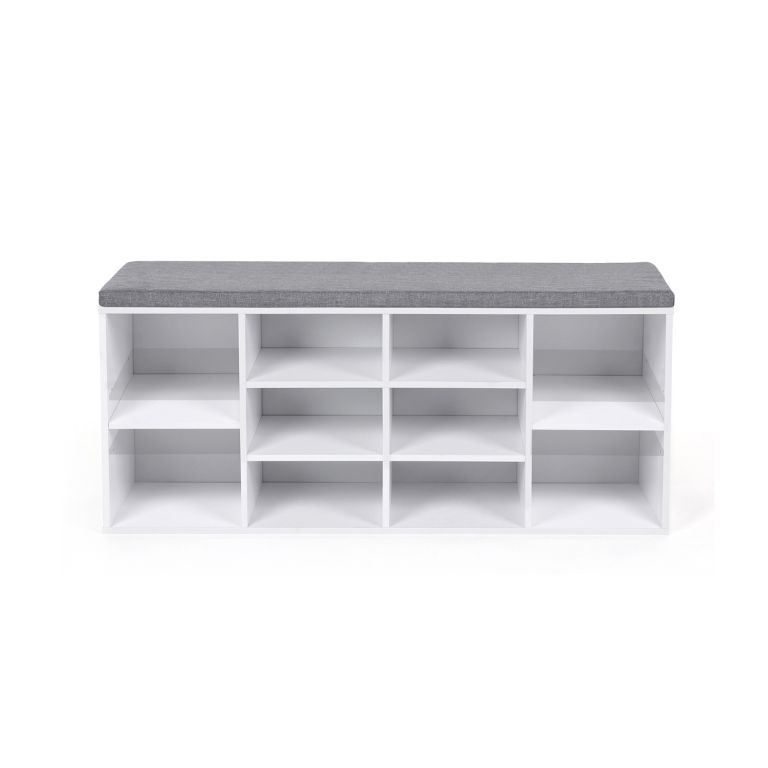 Kényelmes pad puha párnával és 10 cipőtartó rekesszel - a tárolóhely és a kényelem ideális kombinációja.