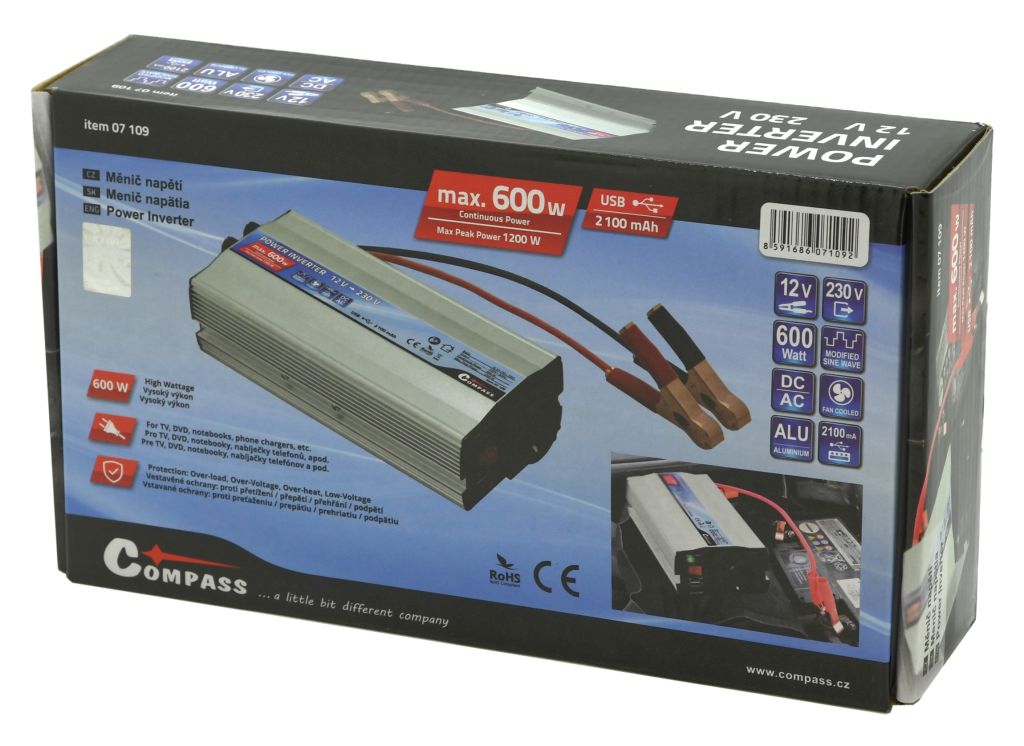 COMPASS Feszültség átalakító 12/230V 600W + USB