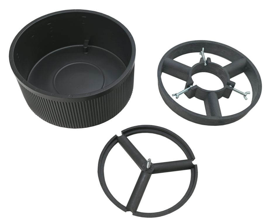 Robusztus állvány akár 1,5 m magas karácsonyfa elhelyezéséhez A fa törzse (10 cm átmérőig) csavarral rögzíthető az aljára. A fa rögzítése, a stabilitás növelése és a dőlésszög beállítása az állvány tetején található három csavarral rögzíthető Az állvány teste strapabíró anyagból készült, mely a nagyobb stabilitás érdekében a rögzítőmechanizmus eltávolítása után akár virágcserépként is használható.