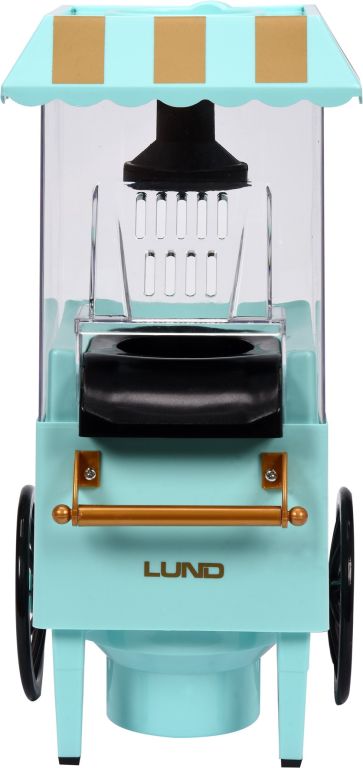 A forrólevegős kocsi 1200 W-os teljesítményen működik, és 3 perc alatt 50-60 g pattogatott kukorica egyszerű elkészítését biztosítja, zsír felhasználása nélkül. Csúszásmentes lábakkal biztosítja a gép stabil tartását. A gépet 230 V-os kábellel tápláljuk.