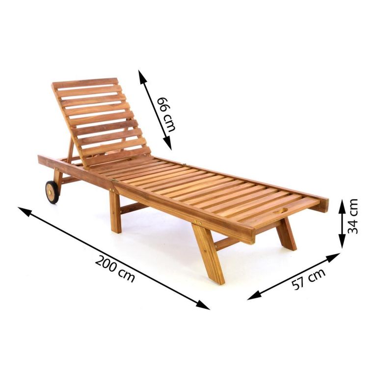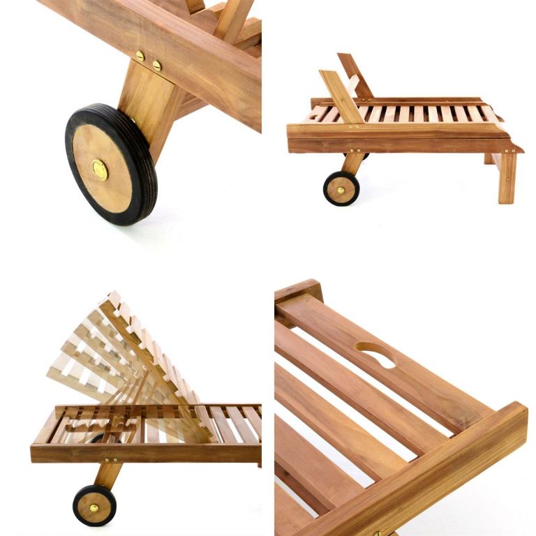 Minőségi teakfa nyugágy gumibevonatú görgőkkel és állítható fejtámlával. A természetes anyagok és a vidéki design minden kedvelőjének.