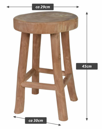 Az ülőgarnitúra tartós teakfából készült, teljesen kezelt és azonnal használható, összeszerelés nélkül. Körülbelül 45 cm × 29 cm × 47 cm (sz × mé × ma) méreteivel és akár 110 kg teherbírásával robusztus és megbízható, kézzel készített gyártásának köszönhetően pedig mindig egyedi.