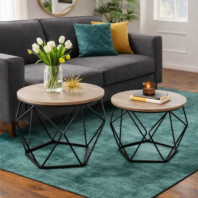 A stílusos és funkcionális kiegészítők egy egész nappalit átalakíthatnak. Egy két dohányzóasztalból álló szett első pillantásra magára vonzza a tekintetet a rusztikus barna asztallap és a fekete fém szerkezet kombinációjával. A kerek formák légiesek és könnyedek, így tökéletesek mind a modern, mind az ipari enteriőrökbe. Akár dekorációként, akár vendéglátásra, akár tárolóhelyként használod az asztalokat, mindig otthonosságot és személyiséget kölcsönöznek a térnek.
