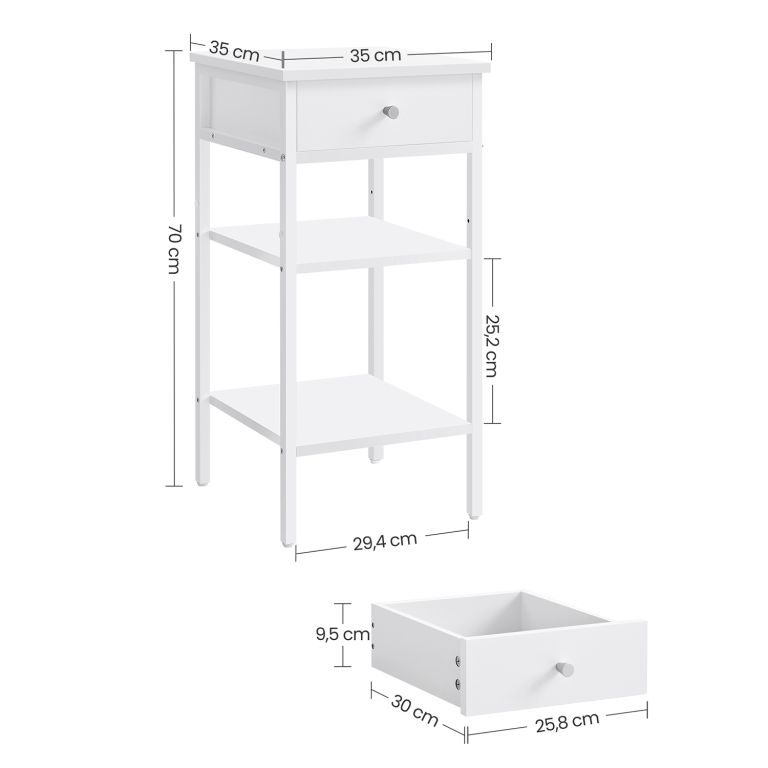 Éjjeliszekrény polccal és fiókkal 35 x 35 x 70 cm fehér