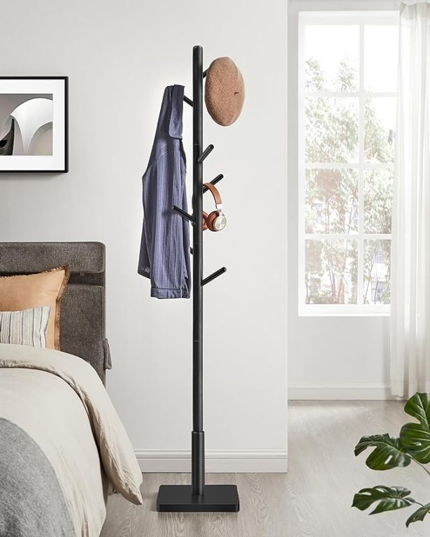 Hozzon rendet és eleganciát otthonába ezzel a szabadon álló, modern fekete színű kabátállvánnyal. Ötvözi a funkcionalitást és a minimalista dizájnt, így előszobába, irodába vagy hálószobába is tökéletesen illeszkedik. Szerszámok nélkül könnyen összeállítható, így pár perc alatt felállíthatja és azonnal használatba veheti.