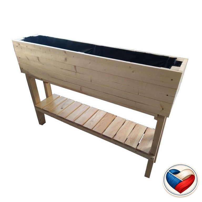 A szerkezet 20 mm vastag luc- és fenyőfából készült, és 40 × 60 mm-es masszív lábakon áll, amelyek biztosítják a stabilitást. A fa védőfelület-kezeléssel van ellátva, amely segít megvédeni az anyagot a nedvességtől és az időjárás viszontagságaitól. A praktikus alsó polc helyet biztosít szerszámok, talaj vagy palánták tárolására. Az ágyásban lévő geotextília elválasztja a talajt a szerkezettől, és segít meghosszabbítani a fa élettartamát.