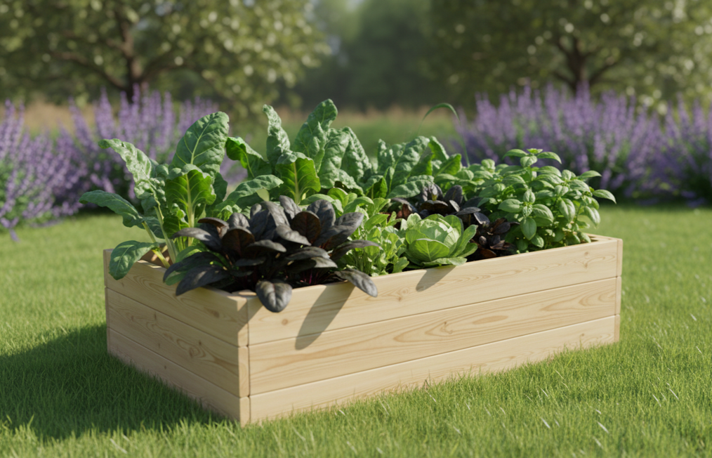 Az ágyás meg van emelve a könnyebb munka és a bőséges termés érdekében, valamint extra masszív.