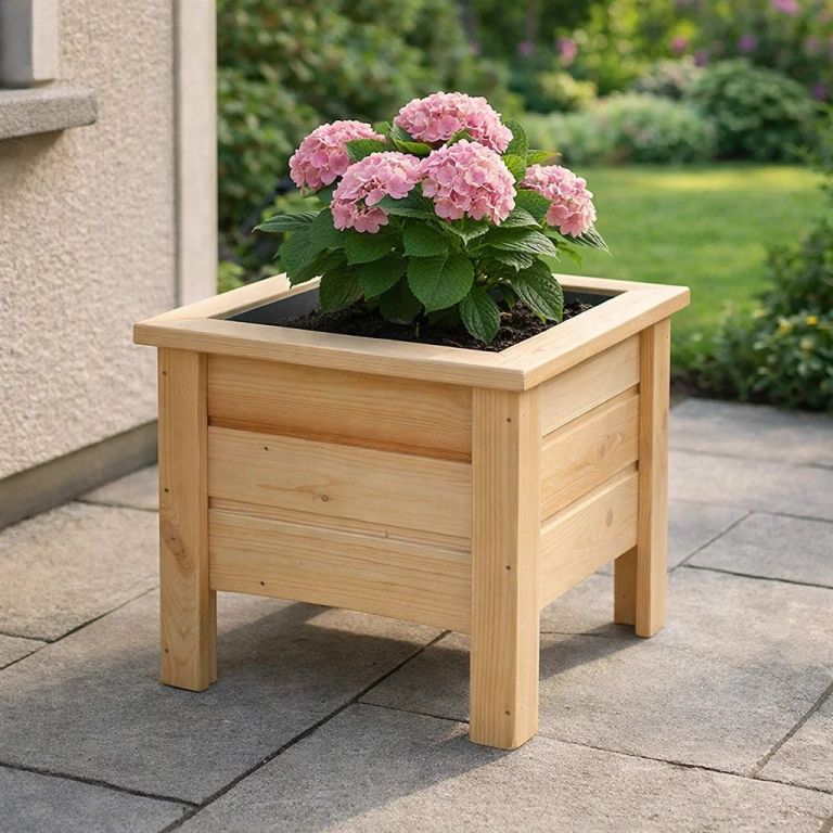 A virágcserép fenyő- és erdei fenyőfából készül, praktikus peremmel és az alján a felesleges víz elvezetésére szolgáló lyukakkal rendelkezik. A csomaghoz tartozik egy fekete nem szőtt szövet, amely elválasztja a talajt a szerkezettől. Minden Maceta típusú virágcserép azonos magasságú, így könnyen kombinálhatók egymással. A fa természetes anyag, dolgozhat és repedhet, ami természetes tulajdonsága. A termék nem alkalmas téli időszakban történő kültéri használatra – ez jelentősen lerövidíti az élettartamát.
