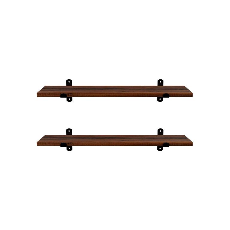 Ez a két darab retró dizájnú fali polcból álló szett azonnal feldob bármilyen belső teret. A sötét fa és a fekete fém konzolok egyszerre elegánsak és modernek, így tökéletesek hálószobába, nappaliba és előszobába is. Helyet teremt dekorációknak, könyveknek vagy apró tárgyaknak, amelyeket mindig szem előtt szeretne tartani.