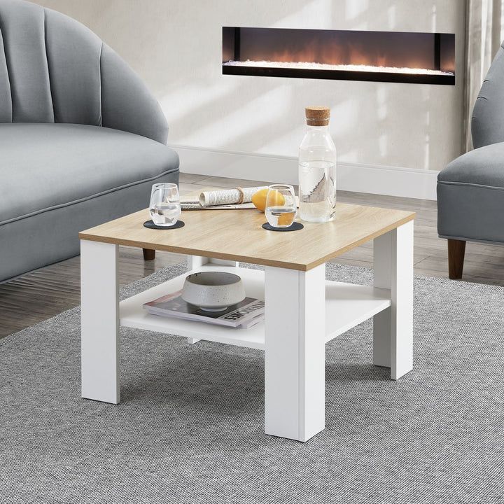 Fehér dohányzóasztal polccal 60 x 60 cm
