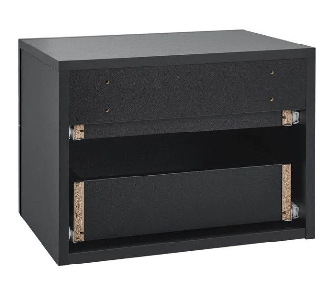 Modern, függesztett éjjeliszekrény 2 fiókkal, fekete színben, ideális hálószobába és nappaliba.