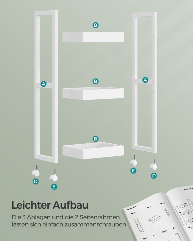 A bambuszból és MDF-ből készült stabil konstrukció hosszú élettartamot és egyszerű karbantartást biztosít. A 3 polc, amelyek közül az egyik magasságban állítható, lehetővé teszi a tér igényeihez igazítását. A kerekek könnyen levehetők, és a polc konyhapulton is használható. Néhány perc alatt összeszerelhető.
