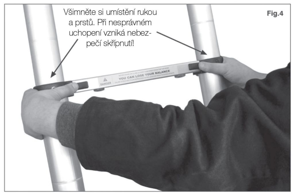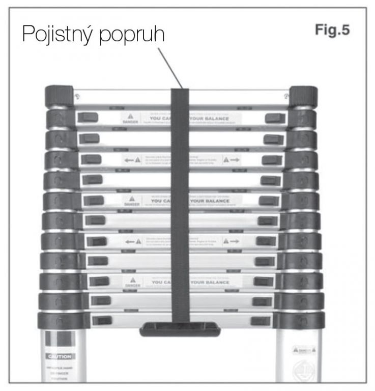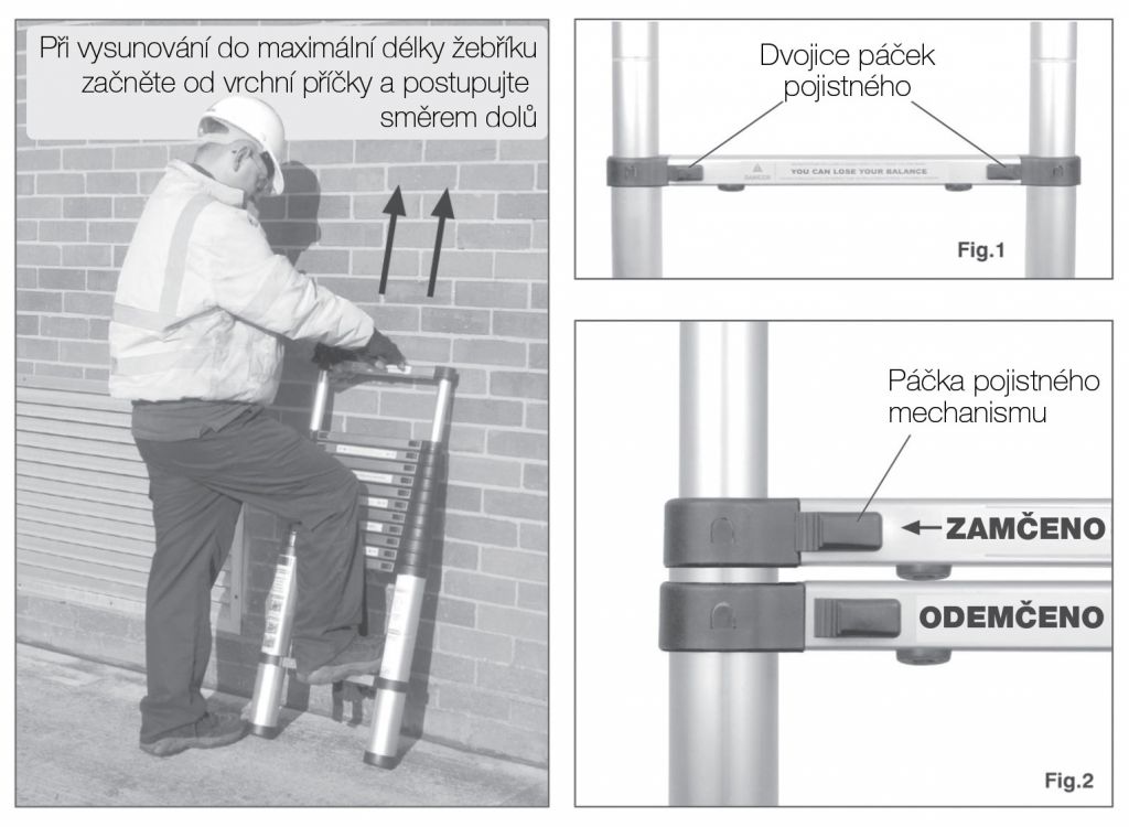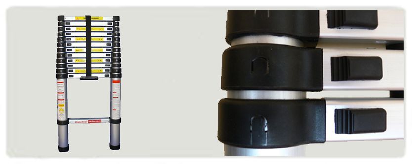 A létra hosszanti irányban való eltolásával és a biztonsági zár segítségével a létra bármely magasságba állítható
