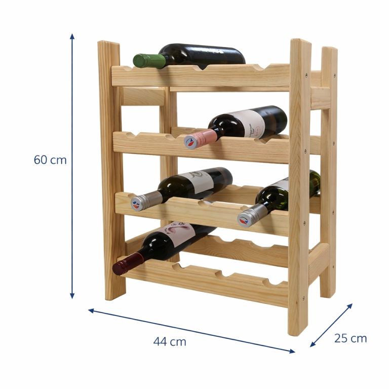 A jól kidolgozott, tartós boros állvány tömör fából készült, és hosszú ideig tartós marad.