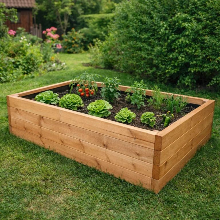 A könnyebb munkavégzés és a gazdag termés érdekében emelt ágyás 40 mm vastag anyagból készült, így tartóssága jóval hosszabb, mint a többi faágyé. A virágágyás felületét olaj alapú matt mázzal kezelik, amely évek után sem hámlik, nem reped, és bármilyen fának szánt festékkel átfesthető. A geotextília a termék csomagolásának részét képezi, és a talaj és az ágyás elválasztására szolgál.