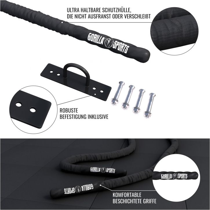 Gorilla Sports Erősítő kötél tartóval 15 m x 5 cm