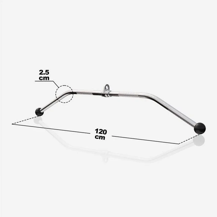 Ez a bár nagyszerű kiegészítője lesz fitnesztornyának. Forgócsuklójának köszönhetően különféle gyakorlatokat tesz lehetővé, és egyben tehermentesíti a csuklóját, a rúd végén található gumilabdáknak köszönhetően különösen sok fogási lehetőség áll rendelkezésére. Ügyeljen arra, hogy a háta lehetőleg egyenes legyen, és ne dőljön túlságosan hátra. Ne hagyja, hogy a súly húzza magát, hanem minden mozdulatot irányítottan hajtson végre. Az optimális markolatszélesség célzott alkalmazása határozza meg, hogy széles markolattal a keresztirányú izmokat, keskeny markolattal pedig a hosszanti izmokat erősítjük.