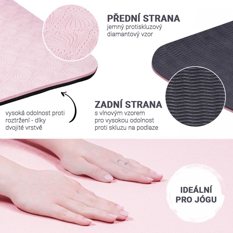 Ez a szőnyeg ideális jógához, pilateshez vagy gimnasztikához. A jógaszőnyeg nyugtató színei különösen hasznosak a padlón végzett csoportos gyakorlatokhoz. Edzés után feltekerve rakhatod őket egymásra. A fekete oldalnak köszönhetően kicsomagoláskor egy pillantással láthatod, hogy melyik oldal tartozik a talajhoz, és ha szeretnéd magaddal vinni edzésre a természetbe, akkor ez gond nélkül lehetséges, mivel könnyű és könnyű visz. Puha anyagból készült, mely gyengéd a bőrhöz.