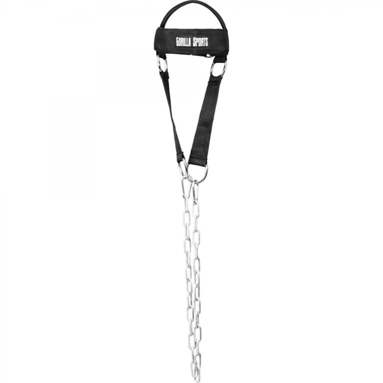 Kivál segédeszköz nyakerősítő gyakorlatok elvégzésénél. Acéllánc karabénerrel, neoprém párnázás a fejrészen.