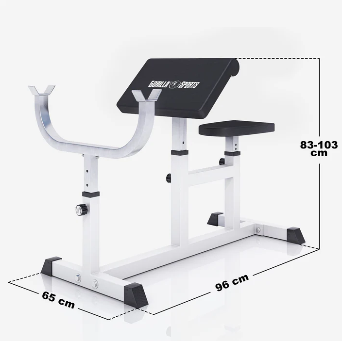 A gyakorlatokat ezen a súlypadon kétkezes súlyzókkal hajtják végre, általában nagyobb súlyokkal. Néhány gyakori hiba azonban kerülendő: a törzs megdöntése vagy felemelése edzés közben, helytelen mozgástartomány és túlzott keréksúly. A pad stabilan áll a csúszásmentes lábakon, és a zárócsap gyors beállításának köszönhetően egyszerű kezelhetőséget biztosít. Az ülés, a háttámla és a súlyzó fogantyúja öt irányba állítható, a párnázott kartámasz pedig enyhíti a könyök és a hát feszültségét edzés közben.
