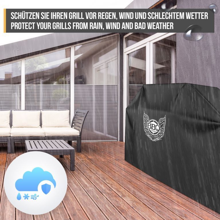 A grillsütő huzat robusztus anyagból készült, és megbízható védelmet nyújt az eső, hó, szél és nap ellen.