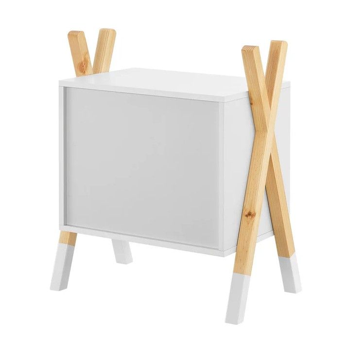 Stílusos, fehér színű, fiókkal és polccal ellátott gyerek éjjeliszekrény. Nagyszerű kiegészítője lehet egy gyerekágynak.