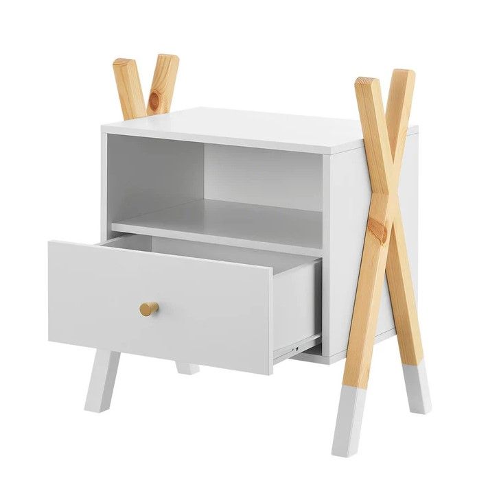 Gyerek éjjeliszekrény fiókkal és polccal fehér