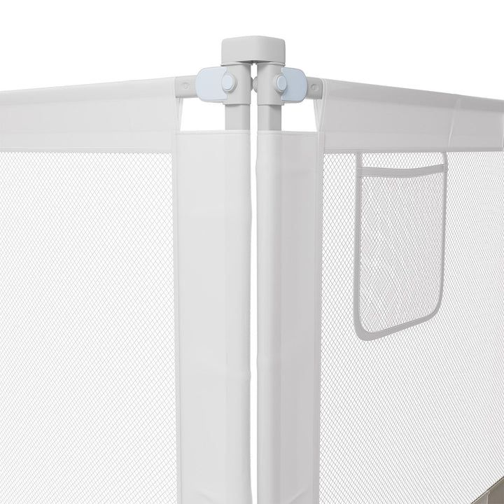 A robusztus acélszerkezet és a tartós Oxford szövet hosszú élettartamot és egyszerű karbantartást biztosít. Az egyszerű összecsukás és összeszerelés lehetővé teszi a gyors használatot otthon és útközben is. A matracvédő más alkatrészekkel kombinálható a nagyobb biztonság érdekében.