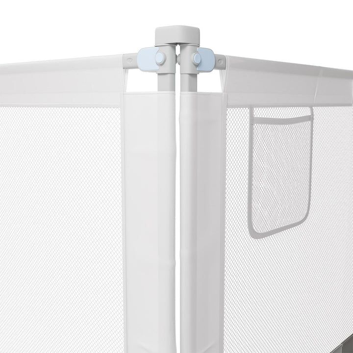 A robusztus acélszerkezet és a tartós Oxford szövet hosszú élettartamot és egyszerű karbantartást biztosít. Az egyszerű összecsukás és összeszerelés lehetővé teszi a gyors használatot otthon és útközben is. A matracvédő más alkatrészekkel kombinálható a nagyobb biztonság érdekében.