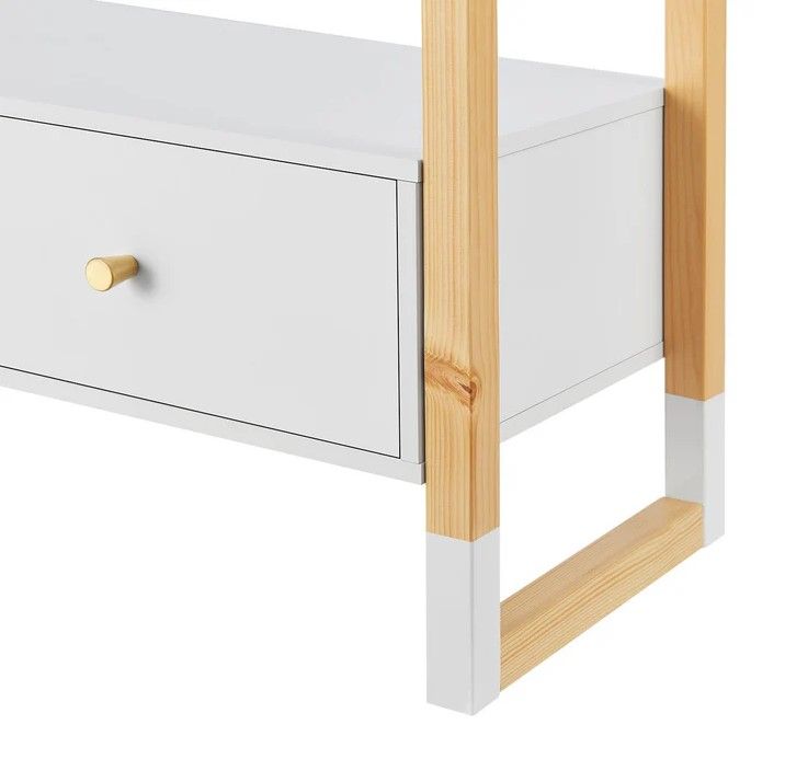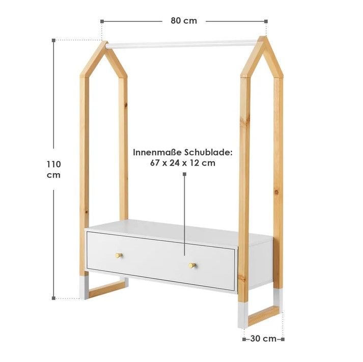 A fenyőfa és a fehér MDF kombinációja biztosítja a szilárdságot és a tartósságot. A nagyméretű fiók praktikus kiegészítők, játékok vagy cipők tárolására. Az összeszerelés intuitív, a karbantartás pedig nagyon egyszerű.