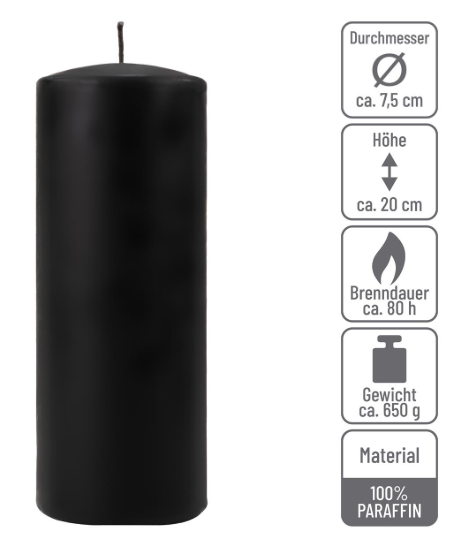 Teremtsen stílusos és meghitt hangulatot otthonában 20 cm × Ø7,5 cm-es fekete paraffinos, illatmentes gyertyákkal, amelyek égési ideje akár 80 óra.