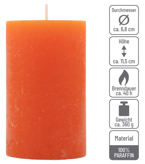 Gyertyakészlet rusztikus 12 db magasság 11,5 cm narancssárga