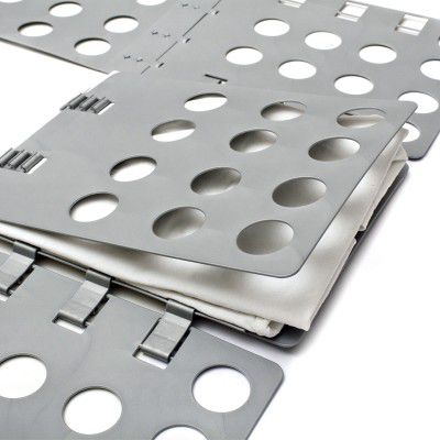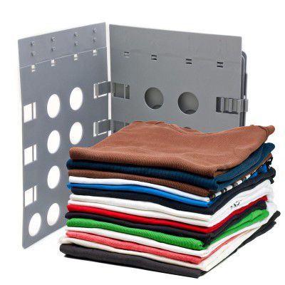 Flip 'n Fold összecsukható táblánkkal másodpercek alatt ugyanabba a kötegbe hajtogathatja az ingeket, pólókat, pulóvereket vagy blúzokat. Minden pillantás a szekrénybe örömet okoz. Minden szépen egymáson fekszik egy halomban. És ez ilyen egyszerű. Egy összecsukható mosódeszkával akár az ágyneműt is egységes méretűre lehet hajtani. Mostantól szekrénye mindig rendezett lesz – a kiváló minőségű Flip 'n Fold összecsukható deszkával alacsony áron.