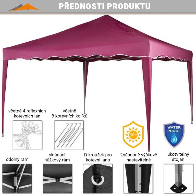 INSTENT BASIC Kerti pavilon 3 x 3 m bordó + 4 oldalfal