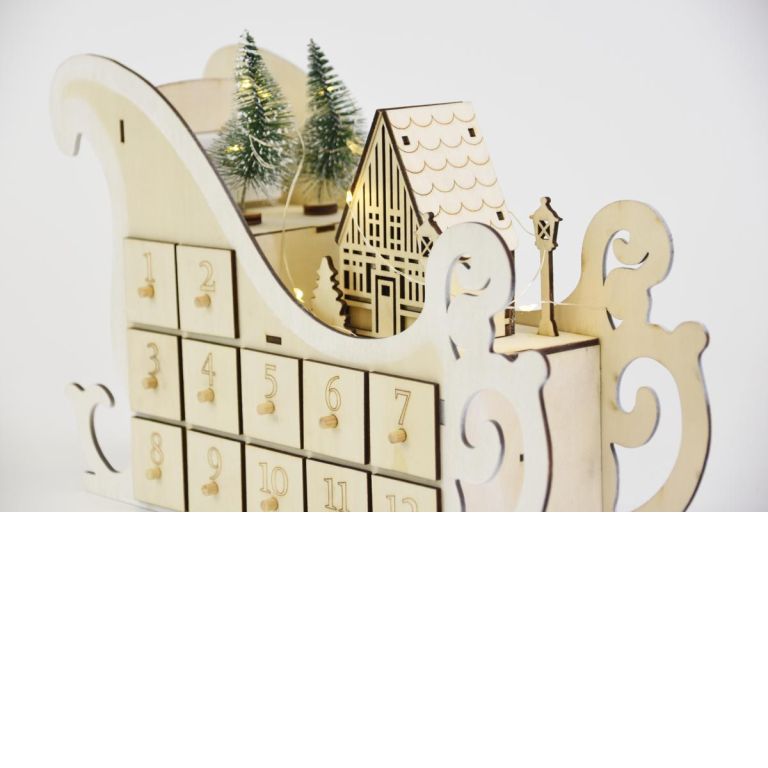A 12 fiókos, LED világítással és időzítővel ellátott karácsonyi naptár ünnepi hangulatot varázsol.