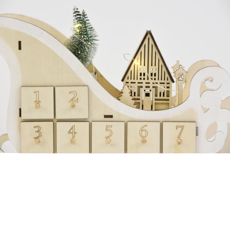A karácsonyi naptár 12 számozott fiókkal van felszerelve, amelyekben apró meglepetéseket, például érméket, édességeket vagy játékokat tárolhat. A meleg fehér LED-ek és az integrált téli táj ünnepi karácsonyi hangulatot varázsol otthonába. A naptár minden évben használható és újabb egyedi meglepetésekkel tölthető meg – ezzel is védve a környezetet. Teljesen összeszerelve érkezik, így az összeszerelés során fáradságot és időt takarít meg. Választhat időzítőt vagy állandó világítást. Az időzítővel egyszerűen nyomja meg az indítógombot abban az időben, amikor a világítást be szeretné kapcsolni. Most a LED-lámpák 6 órán keresztül világítanak, majd 18 órán át nem világítanak. A meleg, indirekt világítás kellemes hangulatot teremt advent idején, és meghozza a karácsonyi hangulatot. Az elemes működésnek köszönhetően nem függ a konnektoroktól, így a naptárt bárhol elhelyezheti a szobában.