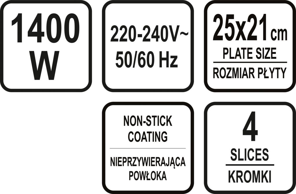 A részletesebb leírás megtekintése1400 W-os kenyérpirító 4 szelet pirítóshoz, tapadásmentes felülettel a könnyű tisztítás és az egyenletes pirítás érdekében. Kompakt kialakítás 0,7 m k