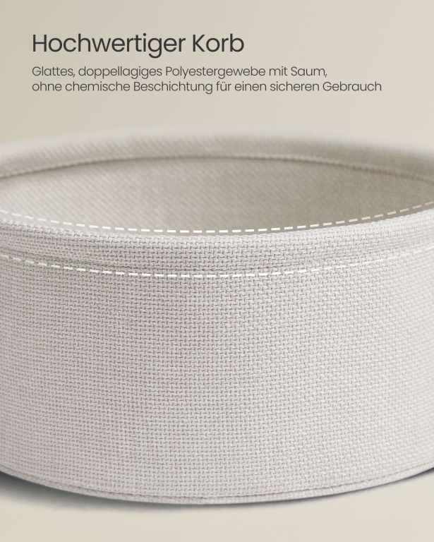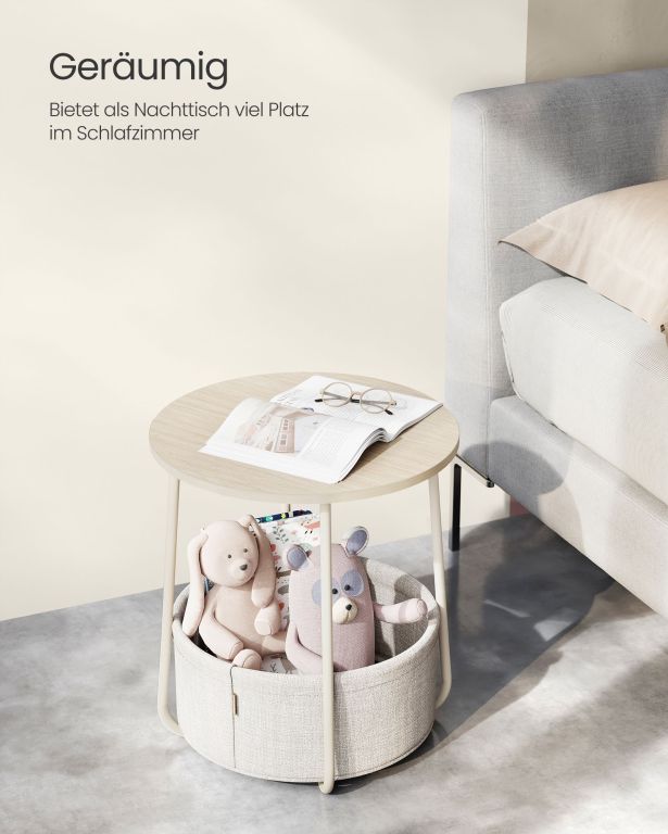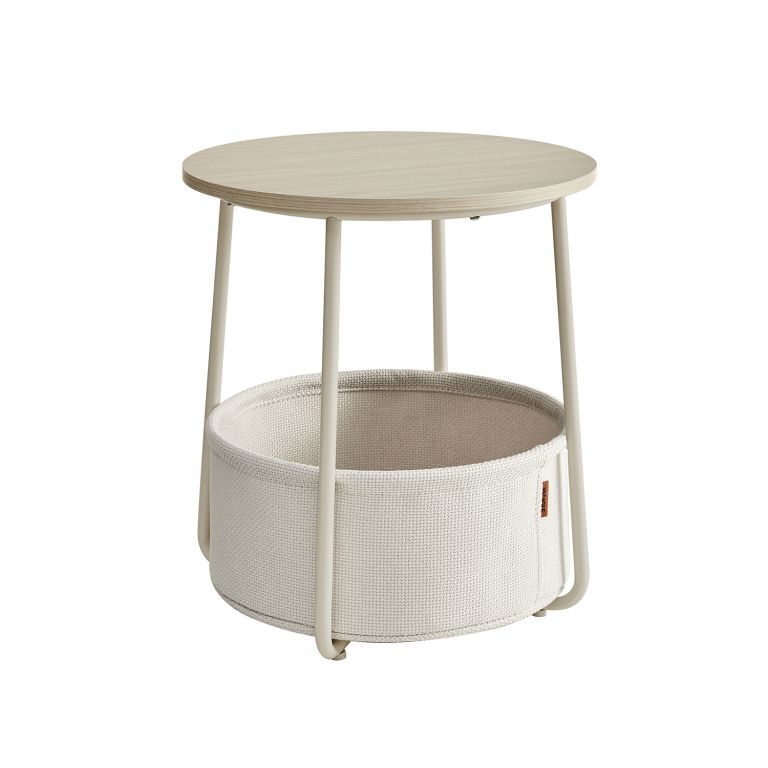 Vigyen frissességet és rendet otthonába ezzel a kompakt kerek asztallal. A praktikus szövetkosár helyet biztosít mindennek, amire szüksége van, anélkül, hogy helyet foglalna. A krémfehér árnyalat bármilyen belső stílushoz illik.