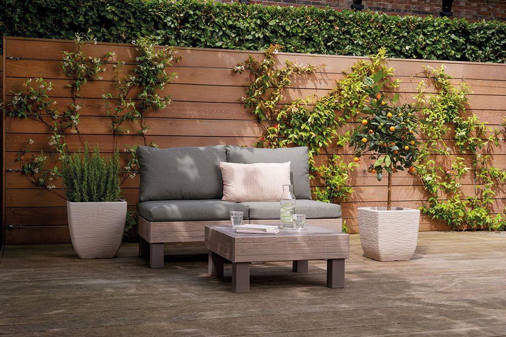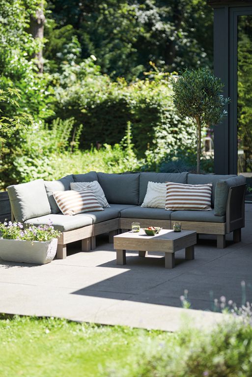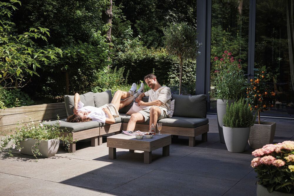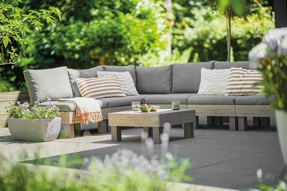 Az ELEMENTS szett segítségével modern kültéri ülősarkot rendezhet be saját elképzelései szerint.