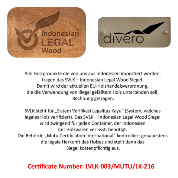 A teak bútorok téliesítésekor ügyeljen arra, hogy ne túl meleg vagy túl száraz helyen tárolja őket. A fa a külső éghajlati változások hatására túlzottan kiszáradhat és megrepedhet. A felhasznált teak fenntartható és felelősségteljes erdőgazdálkodásból származik, és SVLK tanúsítvánnyal rendelkezik. Fa bútoraink kis gyárakban, kézzel készülnek. Minden darab egyedi. Ezért előfordulhatnak kisebb eltérések a termékekben. A kerti bútorokhoz tartozó párna kemény habmaggal biztosítja a kényelmes fekvést. A huzat strukturált poliészterből készült. Vízlepergető és mosható. A huzat kivehető, így kíméletesen tisztítható.