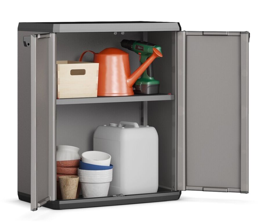 Tartós műhelyszekrény, amely garázsba, nyaralóba, teraszra vagy pincébe is alkalmas. Erős zsanérok, zárhatóság és tartósság a szekrény előnyei közé tartoznak. Praktikus kialakításának köszönhetően szinte minden helyiségbe illeszkedik, és sok eszköz, szerszám és felszerelés tárolására alkalmas. Könnyen karbantartható. Állítható polcok, mindegyik 15 kg teherbírással. alacsony szekrény 1 állítható polc polc teherbírása 15 kg nagy ellenállóság