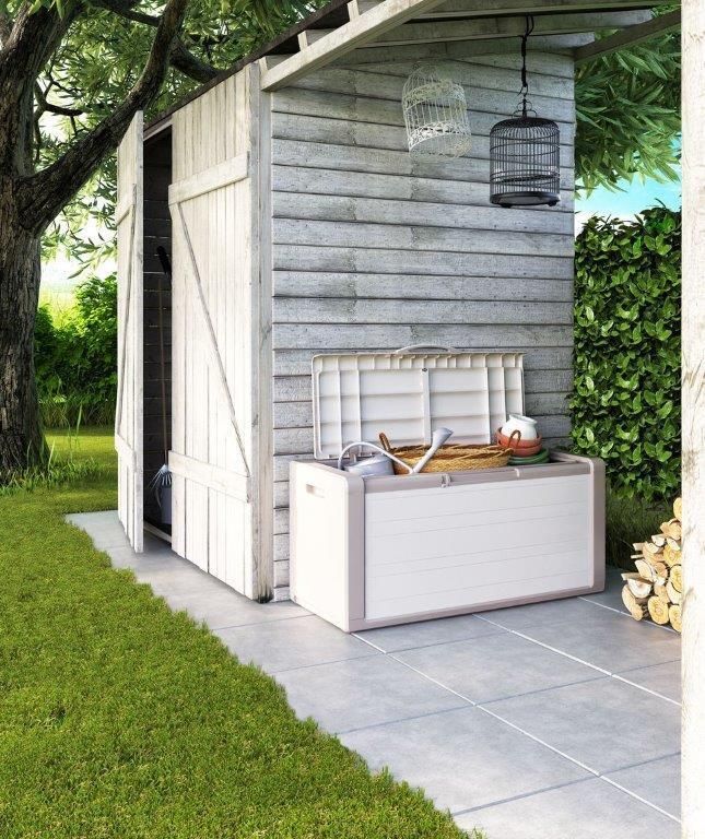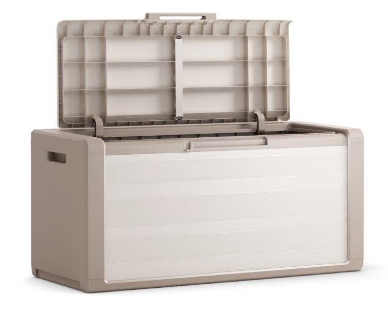 Fedezze fel ezt az elegáns tárolódobozt, amely kertjét, teraszát vagy erkélyét tökéletesen rendezett térré varázsolja. 300 literes űrtartalmával minden szükséges tárgyat befogad – a párnáktól és takaróktól kezdve a játékokig vagy szerszámokig. A stílusos bézs színű kialakítás könnyen illeszkedik minden környezetbe, a vízállóság pedig garantálja, hogy tárgyai minden időjárási körülmények között szárazak maradnak.